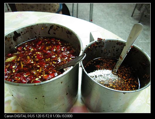 桌上的辣椒醬有三種,我的桌上只有這二種,我喜歡右邊的是辣油的辣,加在黑白切上面,哇口水都流出來囉!