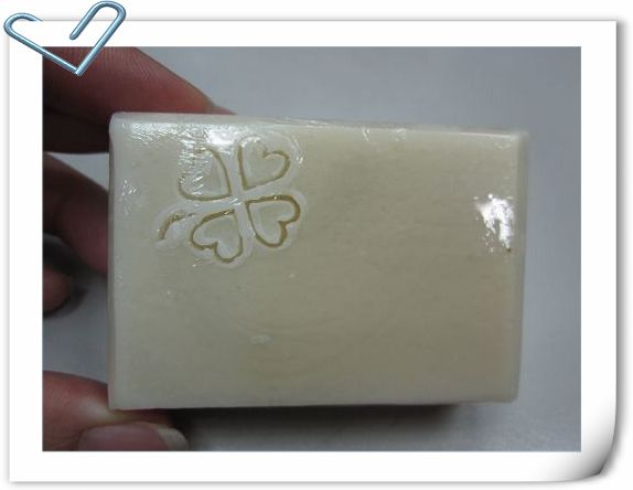酪梨皂的後面有蓋皂章,是幸運草圖案,很可愛。